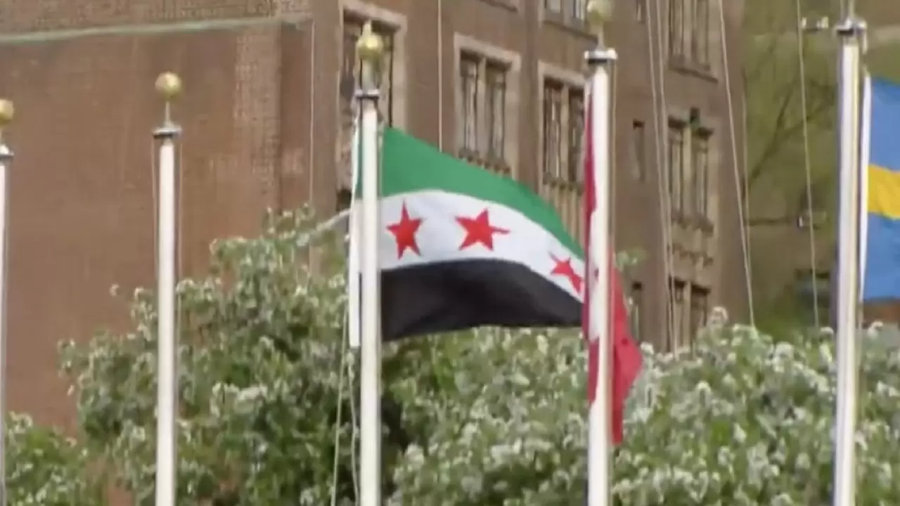 "Devrim bayrağı" olarak bilinen yeni Suriye bayrağı, 61 yıllık Baas rejiminin yıkılmasının ardından yurt dışındaki temsilciliklere asılmıştı.