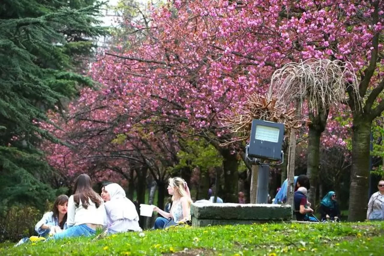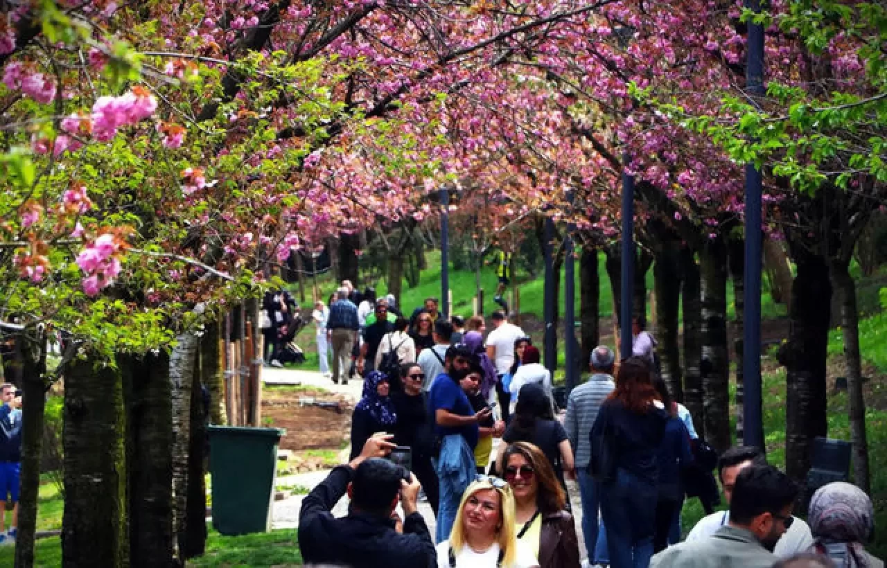 Beyaz ve pembe tonlarda çiçek açan sakura ağaçları, parkı ziyaret eden doğa tutkunlarına fotoğraf çekme fırsatı sundu.