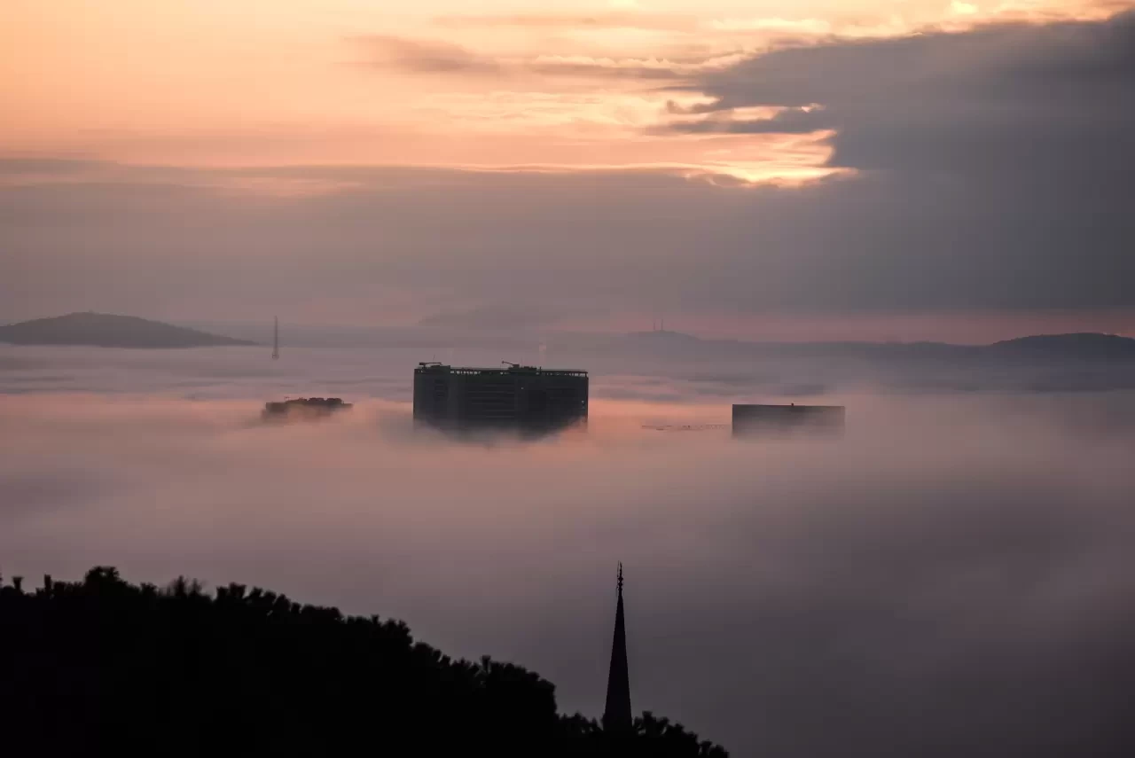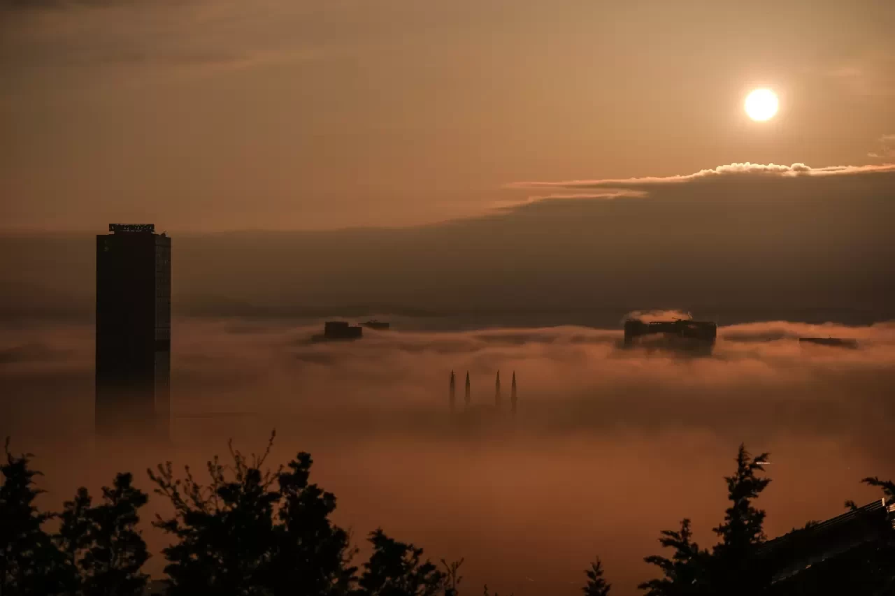 Sis nedeniyle yüksek katlı binaların üst kısımları adeta bulutların içinde kayboldu. Vatandaşlar bu eşsiz manzarayı fotoğraflarken, sürücüler trafikte daha dikkatli olmak zorunda kaldı.