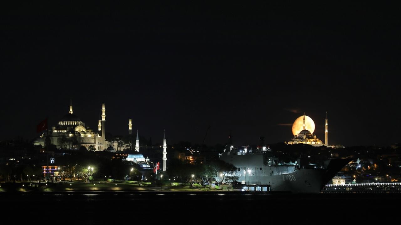 TCG Anadolu gemisi, Fatih Camisi ve Ay, güzel görüntüler oluşturdu.