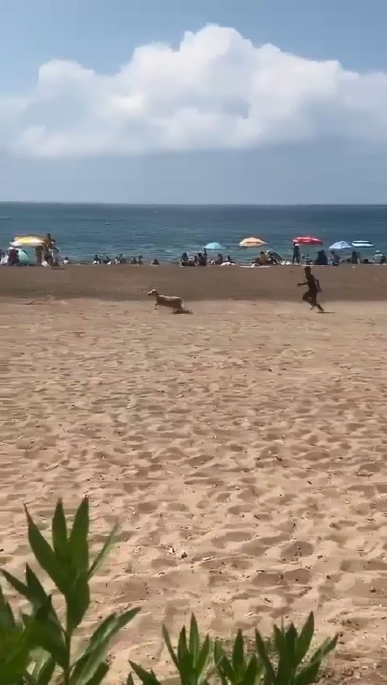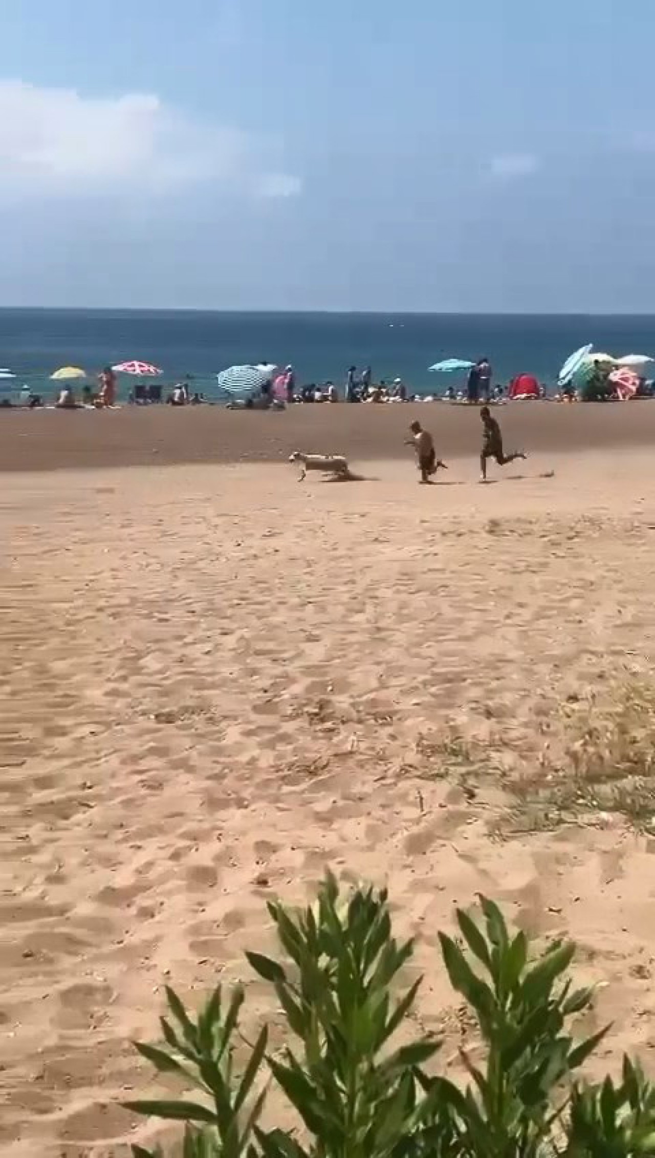 Bir başka küçükbaş kurbanlık ise her yıl binlerce yerli ve yabancı tatilciyi misafir eden Lara Plajı'nda sahibinin elinden kurtulup, koşmaya başladı.