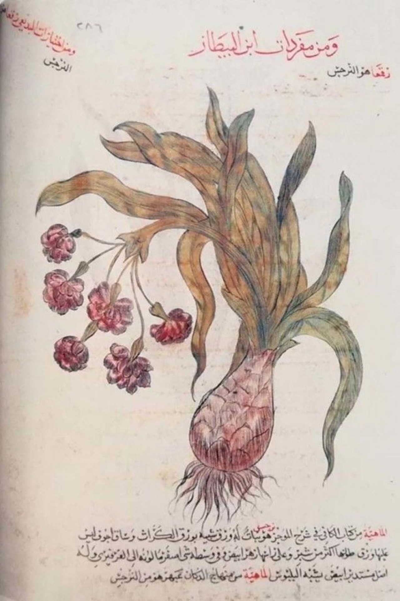 Malagalı İbnü'l Baytâr, Bitkisel İlaç ve Gıdalar Sözlüğü ismini verdiği, botanik becerilerini gösteren devasa ilaç ansiklopedisinde, üç bin kadar farklı bitkiye ve bunların tıbbi özelliklerine yer vermiştir. Fotoğraf: Malagalı İbnü'l Baytâr'ın 13'üncü yüzyıla ait bir risalesinden farklı botanik türler. Bu eserde farklı bitkilerin fizyolojileri, ideal yetiştirme ortamları ve bakımları hakkında açıklamalar yer alır. Filaha el yazmasından. 1001 İcat, Dünyamızda İslam Mirası, Sabah Yayınları.