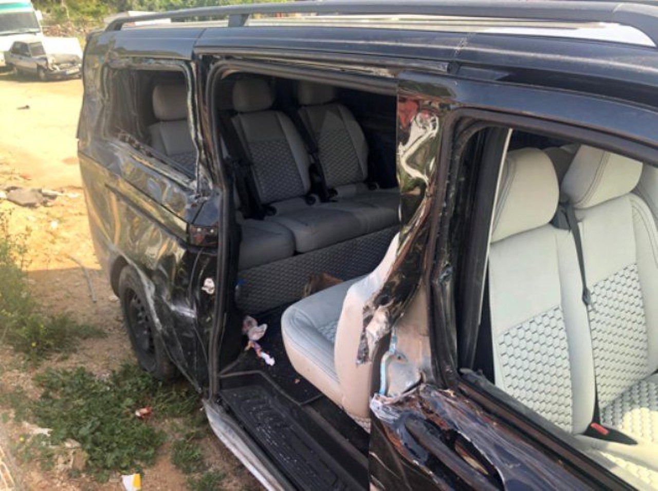 Kameralara yansıyan görüntüde aracın kapısının yerinde olmadığı ve VIP minibüsün sağ tarafının ağır hasarlı olduğu dikkat çekti.