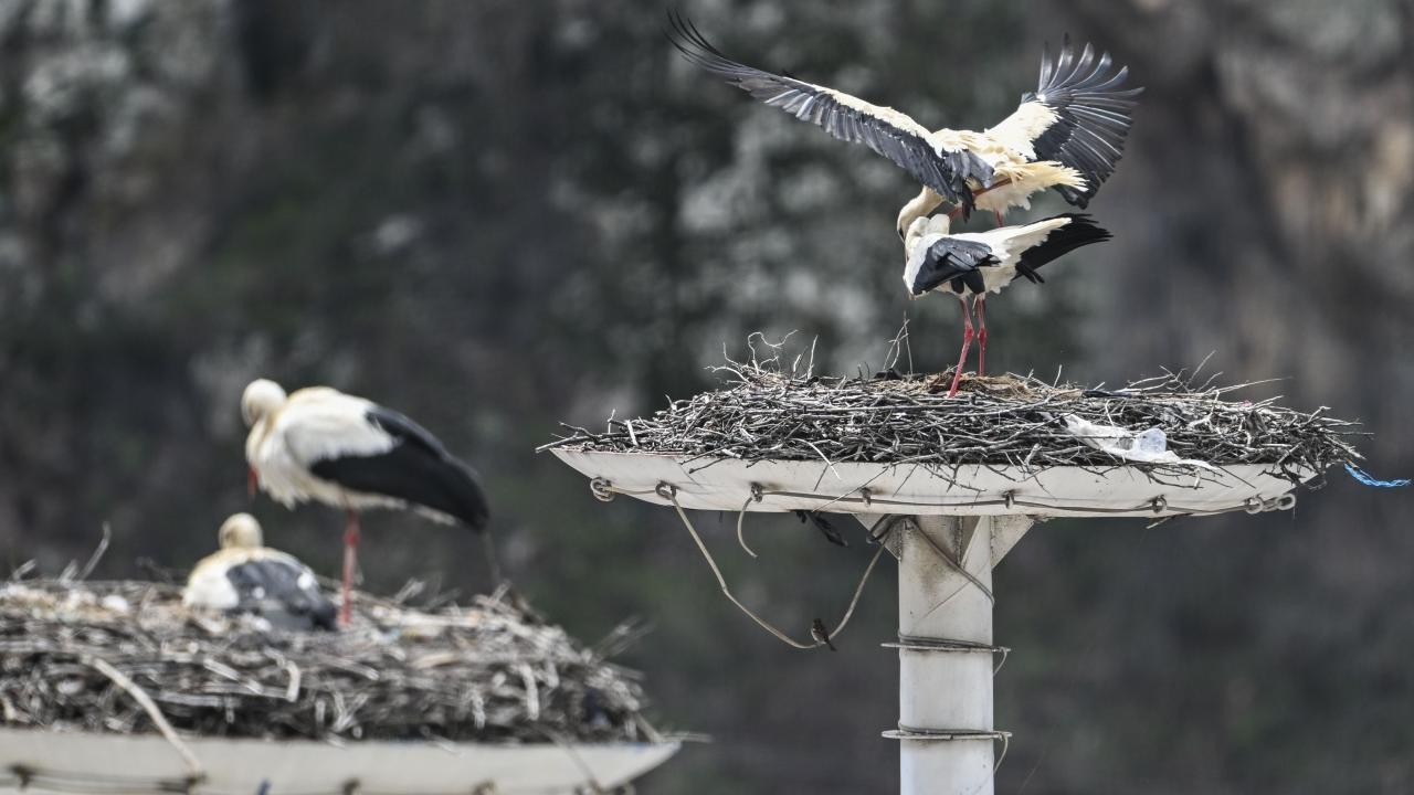 Kış mevsimini sıcak ülkelerde geçiren leylekler, havaların ısınmasıyla birlikte Kuzey Afrika ve Orta Doğu'dan zorlu bir yolculuktan sonra kuluçka dönemini geçirecekleri Kızılcahamam ilçesine geldi.