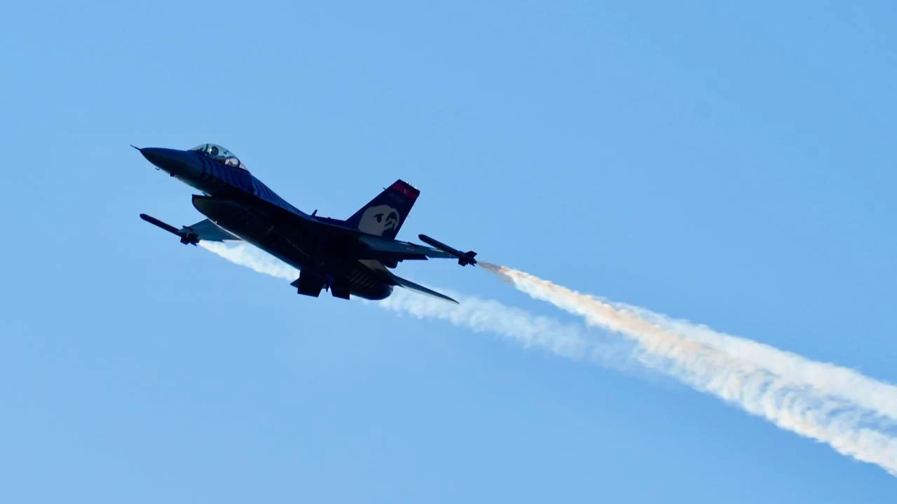 Prova uçuşunu izlemeye gelenler, SOLOTÜRK pilotunun F-16 savaş uçağıyla yaptığı akrobasi hareketlerini cep telefonlarıyla kaydetti.