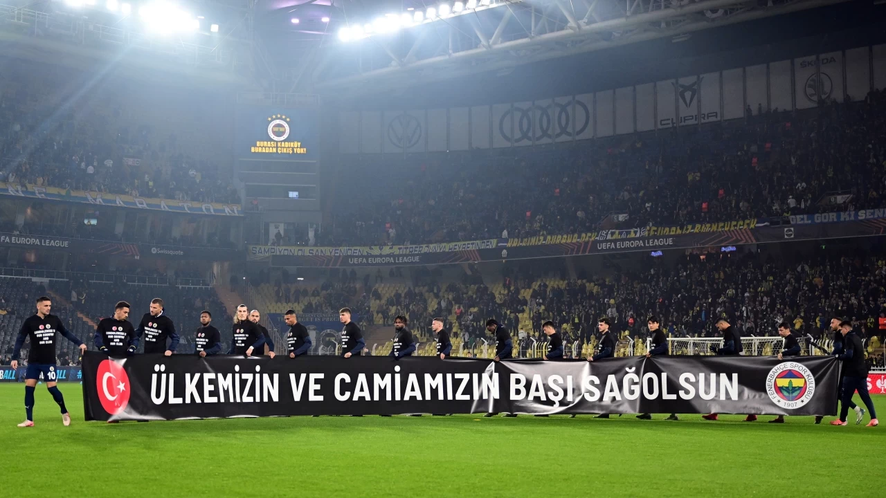 Fenerbahçeli futbolcular Bolu’da hayatını kaybedenler için ısınmaya "Ülkemizin ve Camiamızın Başı Sağolsun" yazılı pankartla çıktı.