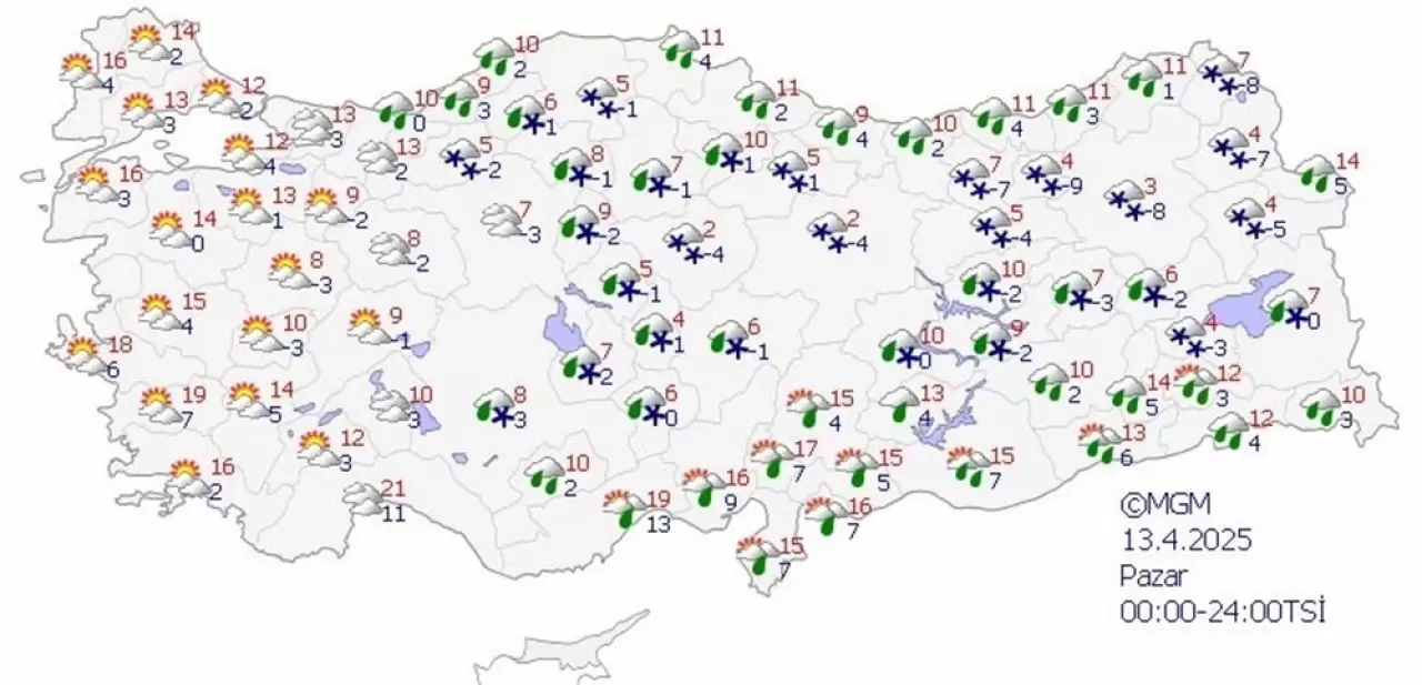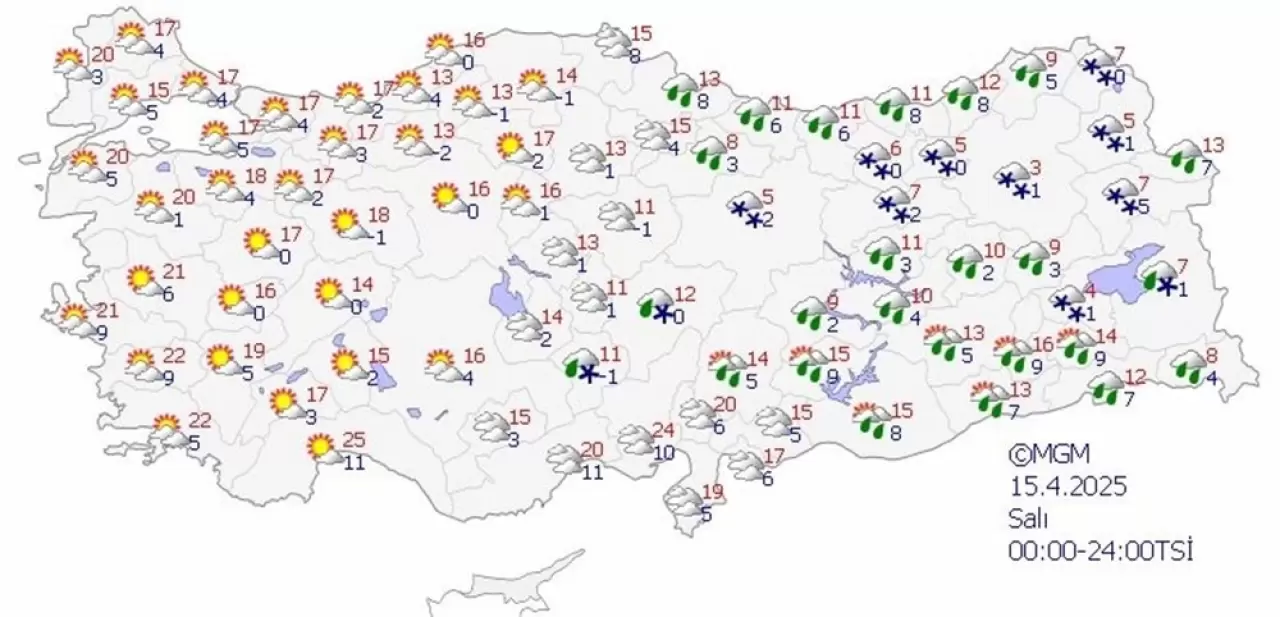 Kıyı kesimler ile Güneydoğu Anadolu'da yağmur ve sağanak, iç ve yüksek kesimlerde karla karışık yağmur ve kar şeklinde görülmesi beklenen yağışların, Bolu, Bartın ve Karabük çevreleri ile Kastamonu kıyılarında kuvvetli olacağı tahmin ediliyor. Sabah ve gece saatlerinde iç ve doğu kesimlerde buzlanma ve don olayı bekleniyor. Doğu Karadeniz’in iç kesimlerinin yüksekleri ile Doğu Anadolu’nun yüksek ve eğimli alanlarında çığ tehlikesi bulunmaktadır.