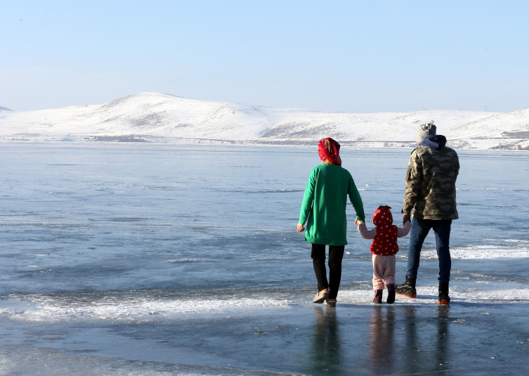 Kars'ta hava sıcaklığının eksi 10 dereceye kadar düşmesiyle birlikte birçok su birikintisi dondu ve bazı göllerin çevresinde buz sarkıtları meydana geldi.