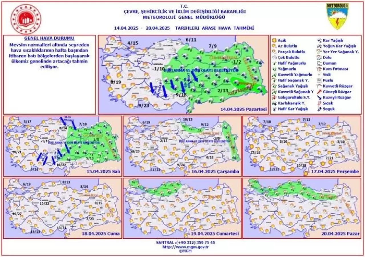Meteoroloji 14 Nisan son dakika güncel hava durumu raporunu açıkladı. Buna göre, yurdun batısına bahar, doğusuna ise kar görülüyor. Kar yağışı özellikle İç Anadolu'nun doğusu ile Doğu Anadolu'da görülecek. İşte il il hava durumu raporu...