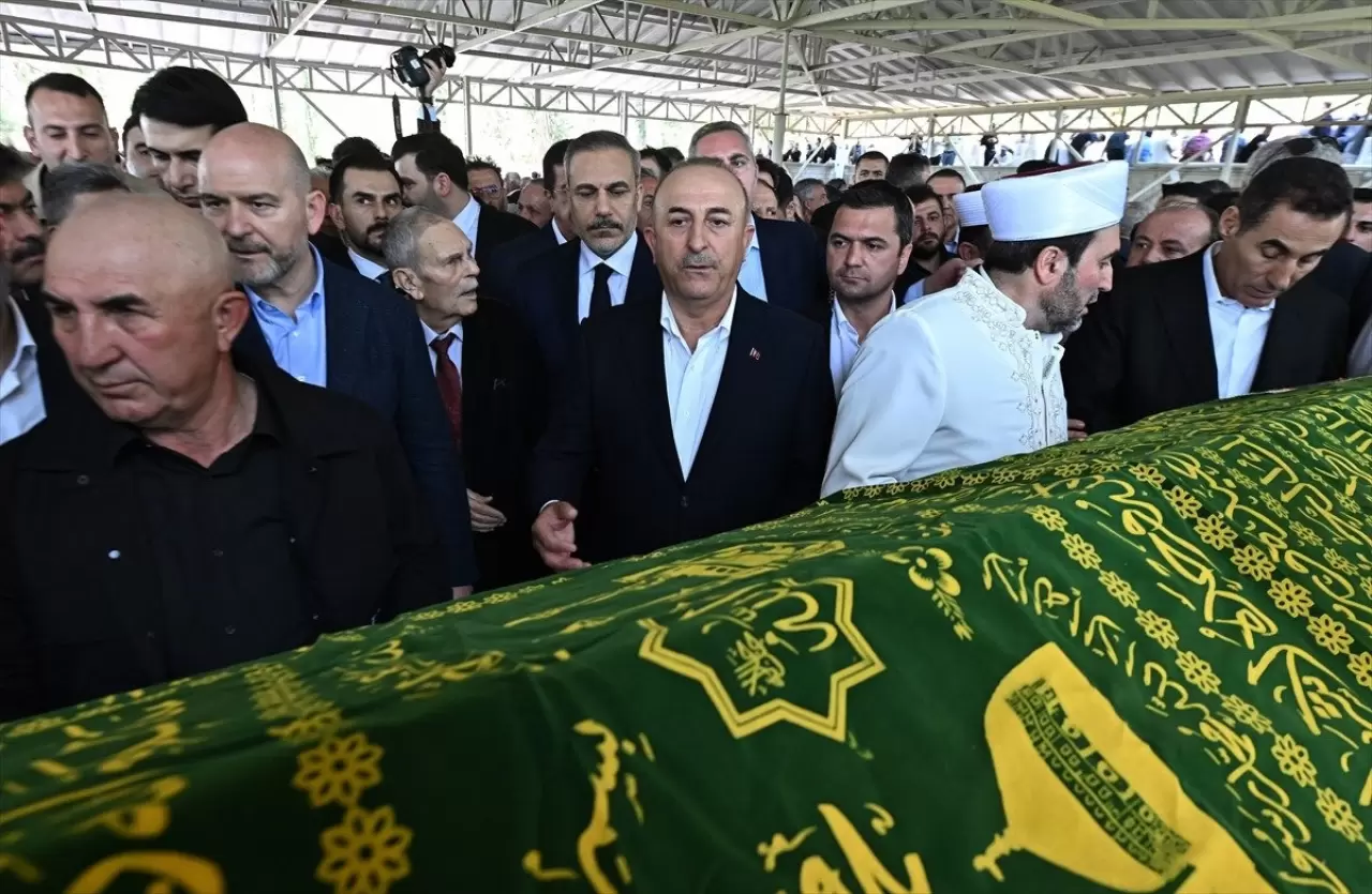 Törene katılan Dışişleri Bakanı Hakan Fidan, Mevlüt Çavuşoğlu ve Alanyaspor Kulübü Başkanı Hasan Çavuşoğlu ile merhumun yakınlarına başsağlığı diledi.