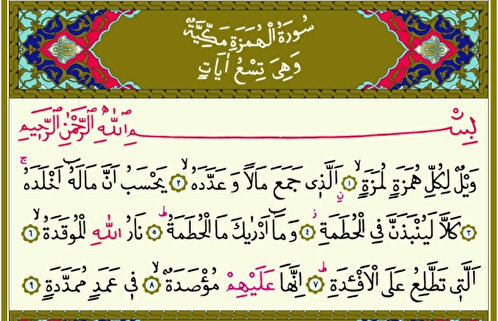 Hümeze Suresi arapça yazılışı