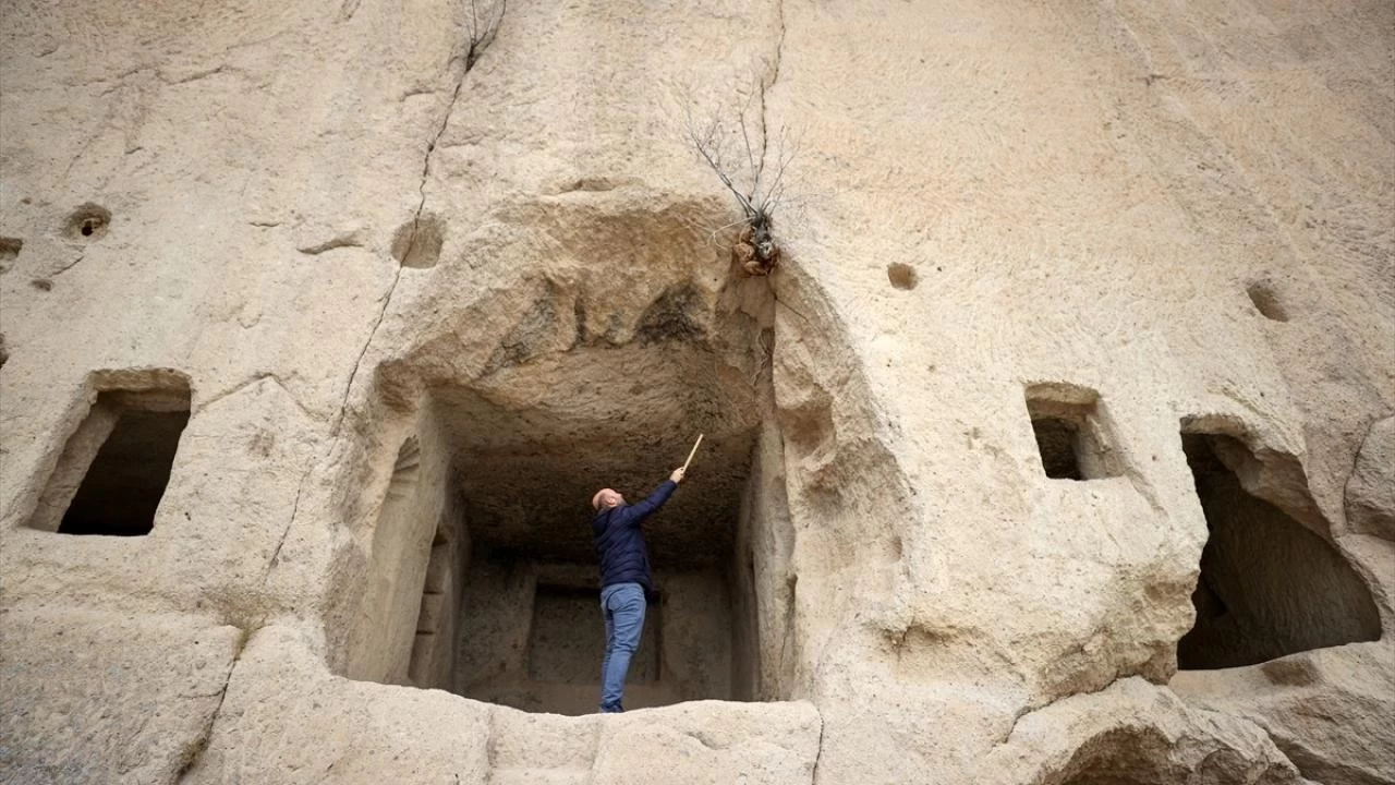 Kapadokya`daki mimari yapıların benzerlerinin de olduğu yerde askeri mühimmat deposu olarak kullanılan kaya oyma ve her biri 65 metre uzunluğundaki 14 galeri dikkati çekiyor.