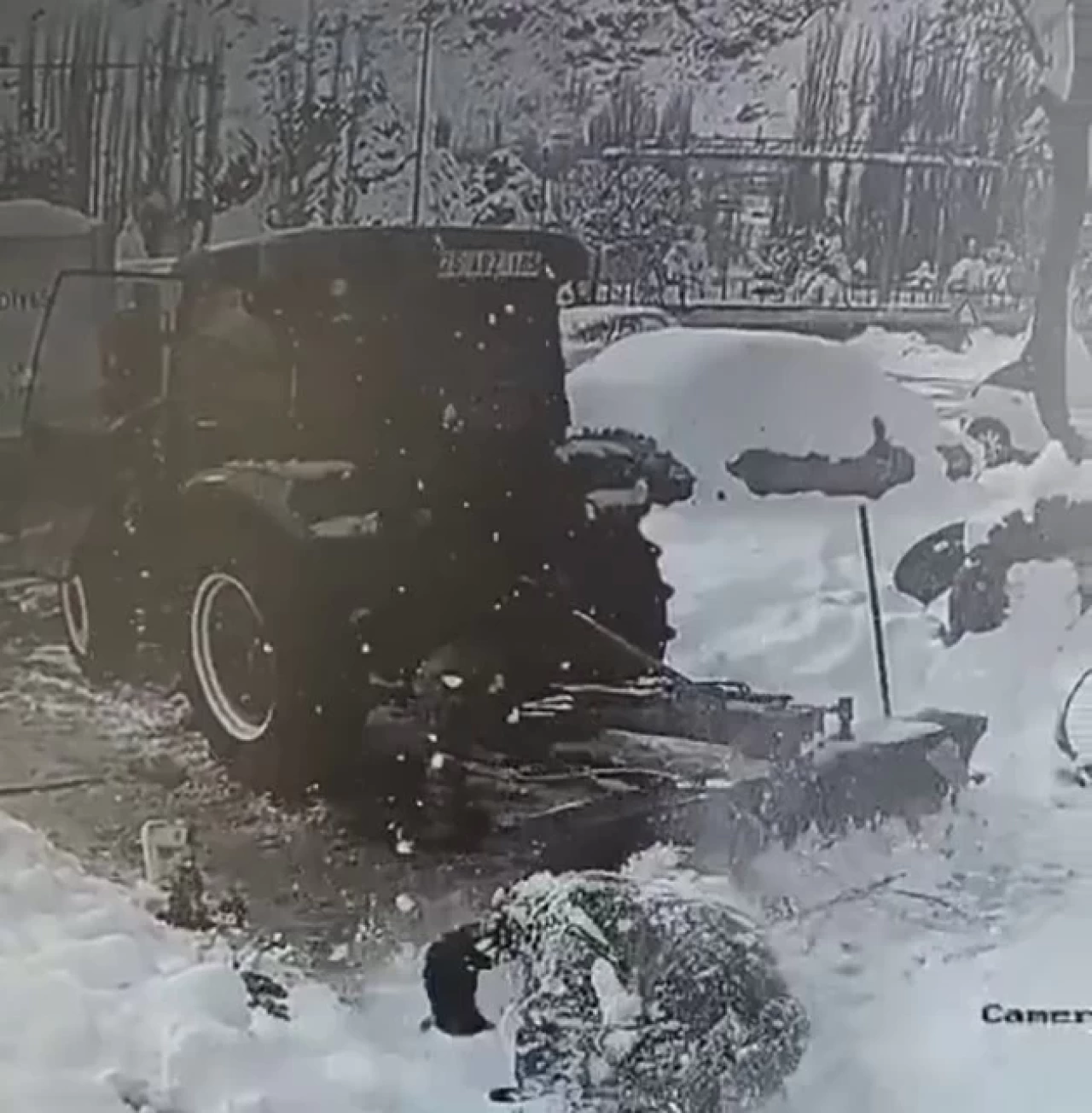 Güvenlik kameralarına yansıyan görüntülerde, oto lastik tamircisi Kahraman Kaya'nın üzerine çatıdan gelen kar kütlesiyle karşı karşıya kaldığı anlar kaydedildi. Kar kütlesinin üzerine düşmesiyle sendeleyen ve şaşkınlık yaşayan Kaya, kısa bir süre sonra toparlanarak işine devam etti.