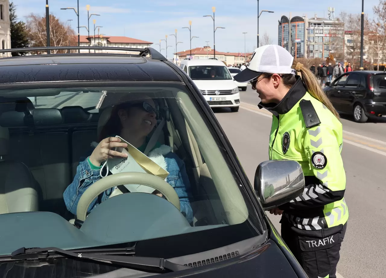 Trafik ekipleri, durdurdukları sürücülerin emniyet kemerlerini kontrol ettikten sonra onlara küçük hediyeler takdim etti. Etkinliğin amacı, hem trafik güvenliğine dikkat çekmek hem de kadın sürücüleri özel günlerinde mutlu etmekti.