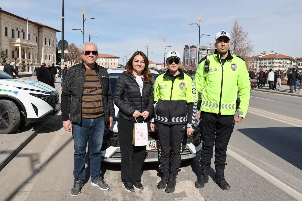 Sivas İl Emniyet Müdürlüğü Trafik Tescil ve Denetleme Şubesi ekipleri, 8 Mart Dünya Kadınlar Günü'nde anlamlı bir etkinlik gerçekleştirdi. İnönü Bulvarı Atatürk Kongre Müzesi önündeki uygulama noktasında kadın sürücüler durdurularak hediyeler verildi.