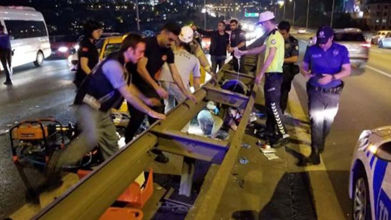 Bu sırada 34 TCY 30 plakalı taksi duran aracı fark etmeyerek arkadan çarptı. Çarpmanın etkisiyle otomobilden savrulan kadın, taksi ile bariyerler arasında sıkıştı. Kazanın ardından olay yerine çok sayıda sağlık, itfaiye ve polis aracı sevk edildi. Olay yerine gelen sağlık ekipleri yaralılara müdahale ederken, itfaiye ekipleri bariyerlerle taksi arasında sıkışan kadını yaklaşık yarım saat süren çalışmanın ardından kurtardı.