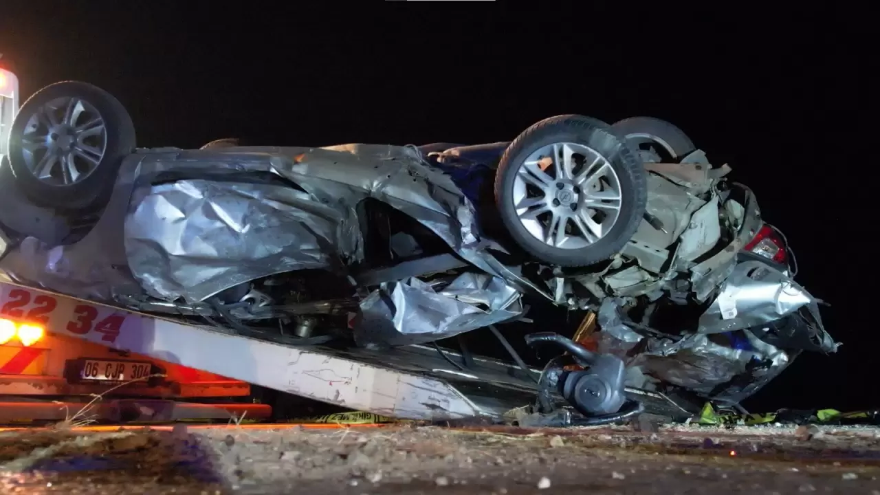 Ankara'nın Kahramankazan ilçesinde iki otomobilin kafa kafaya çarpışması sonucu meydana gelen kazada 3 kişi hayatını kaybetti, 2 kişi yaralandı.