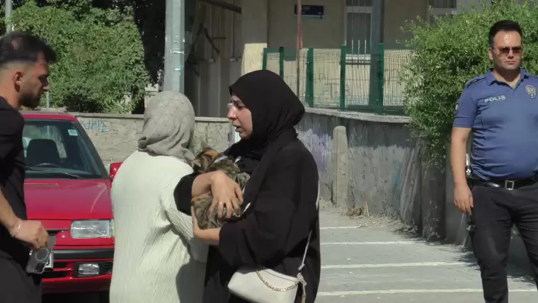 çan bir kadın da evden aldığı kedisiyle kendini dışarı attı. Kedisini bir an bile elinden bırakmayan kadın, gözyaşı döktü.