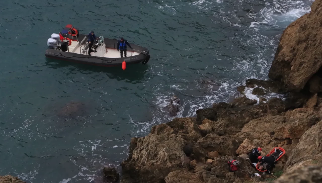 İhbar üzerine bölgeye polis, itfaiye ve sağlık ekipleri sevk edildi. Yaralının falezlerin alt kısmında ve denize yakın bir noktada bulunması nedeniyle deniz polisinden destek istendi. Olay yerine ulaşan deniz polisi ekipleri, Mevlüt Ö.’yü sedyeyle bota alarak Kaleiçi Yat Limanı’na götürdü.
