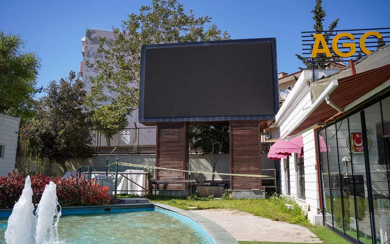Antalya'da park içerisindeki dev LED ekranı tutan ayakların içerisinde bir erkek cesedi bulundu. Üzerinden kimlik çıkmayan, yaklaşık 1 ay önce öldüğü değerlendirilen kişinin cesedi, morga götürüldü.