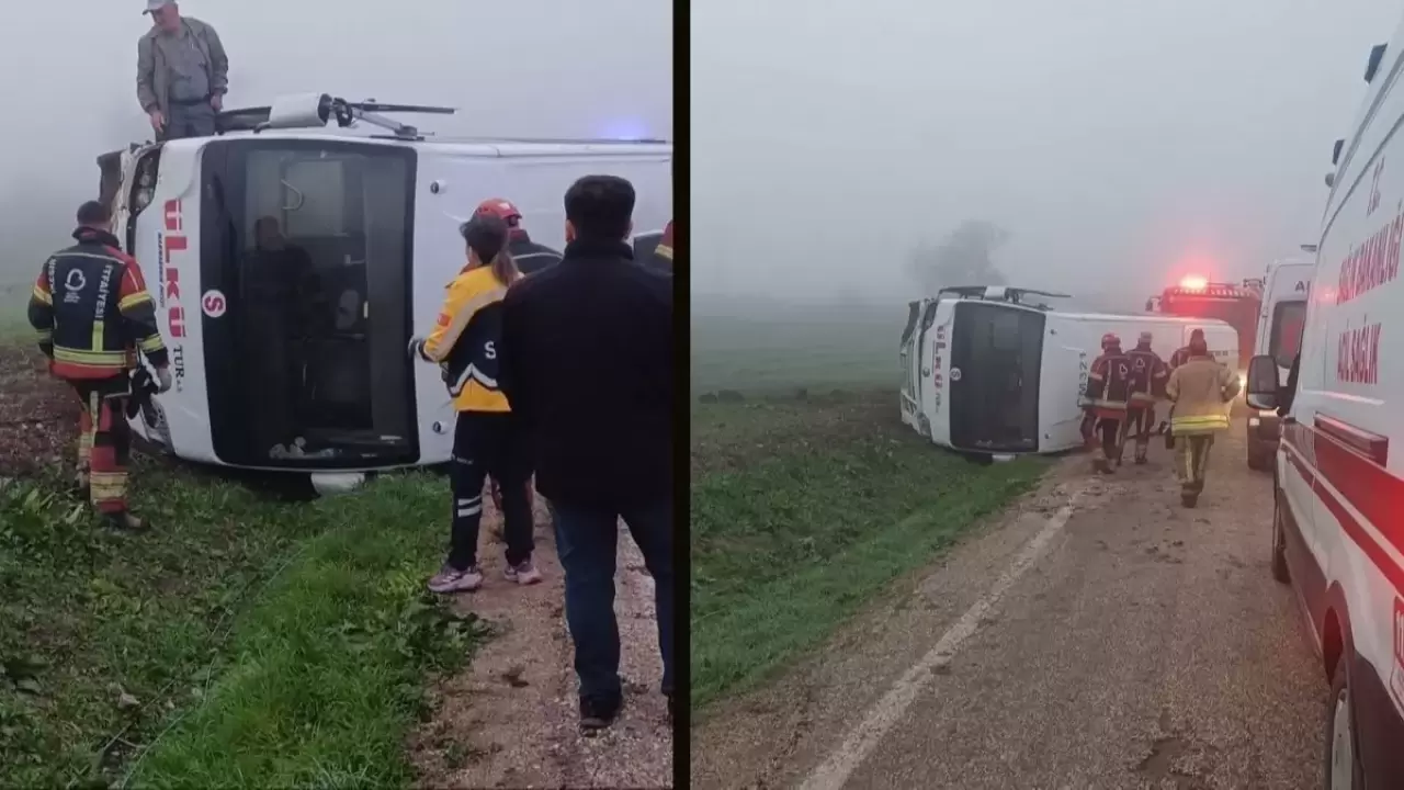 N.T. yönetimindeki 10 S 10065 plakalı midibüs, ilçeye bağlı Külefli Mahallesi kara yolunda kontrolden çıkarak devrildi.