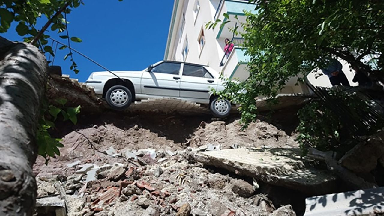 Olay, saat 10.30 sularında Ankara'nın Keçiören ilçesi Pınarbaşı Mahallesi Atlılar Sokak'ta meydana geldi. Sabah saatlerinde üzerinde çatlaklar bulunan 5 katlı bir binanın istinat duvarı henüz belirlenemeyen bir sebeple çöktü. Duvarın çökmesi sonucu park halinde bulunan 06 YCT 66 plakalı otomobil havada asılı kaldı. İki tekerleğinin boşlukta kaldığı otomobilin düşmesine üzerinde bulunduğu parke taşları engel oldu.