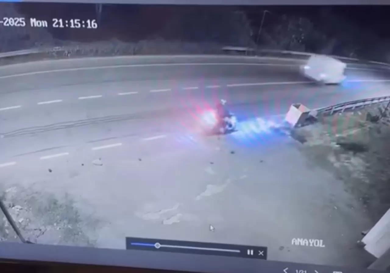 Sağlık ekiplerinin ilk müdahalesinin ardından yaralı sürücü hastaneye kaldırıldı. Kaza anı bir iş yerinin güvenlik kamerasına saniye saniye yansıdı. Görüntülerde motosikletin kontrolden çıkıp devrildiği ve sürücünün savrulduğu anlar net bir şekilde görülüyor.