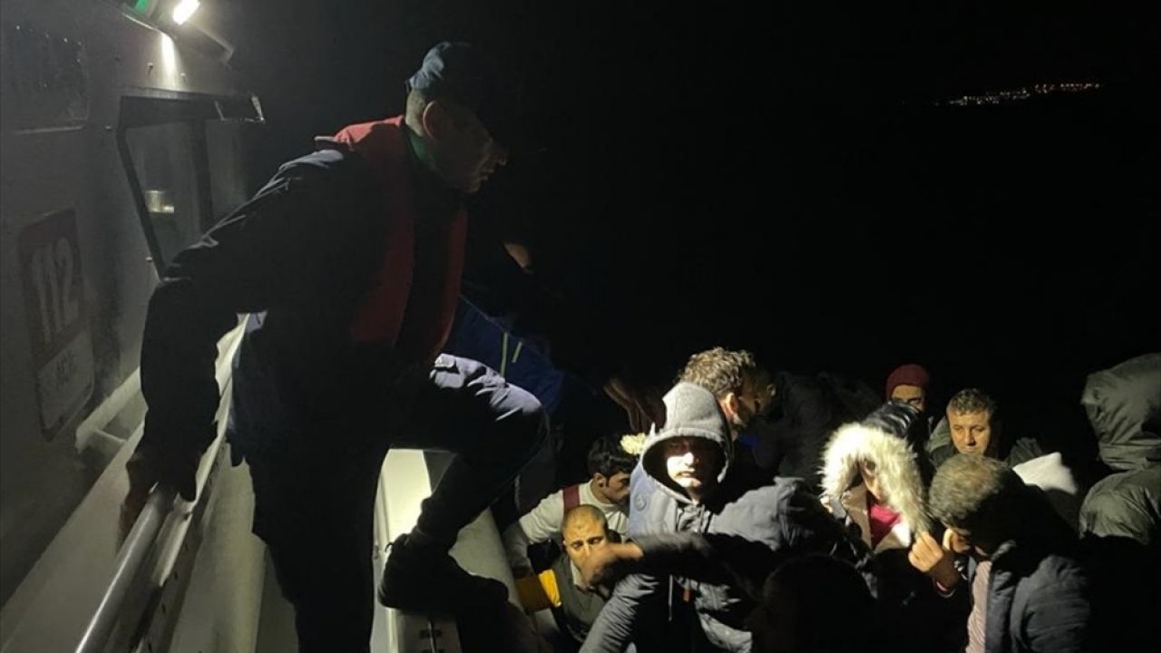 Durdurulan lastik botlarda, illegal yollarla yurt dışına gitmeye çalışan 84 düzensiz göçmen yakalandı.