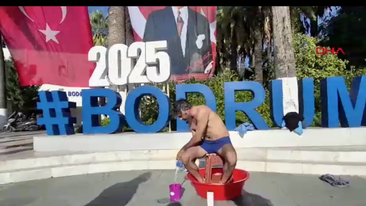 Muğla’nın Bodrum ilçesinde yaşayan Çağatay Yavuz, evinde 6 gündür su akmadığını söyleyerek sıra dışı bir protestoya imza attı. Cevat Şakir Mahallesi’nde yaşayan Yavuz, yaşadığı susuzluğu Bodrum Belediye Meydanı’nda yanına aldığı 5 litrelik suyla duş alarak protesto etti.