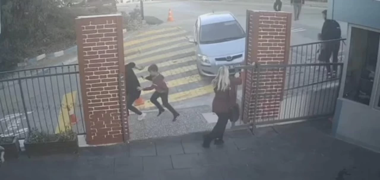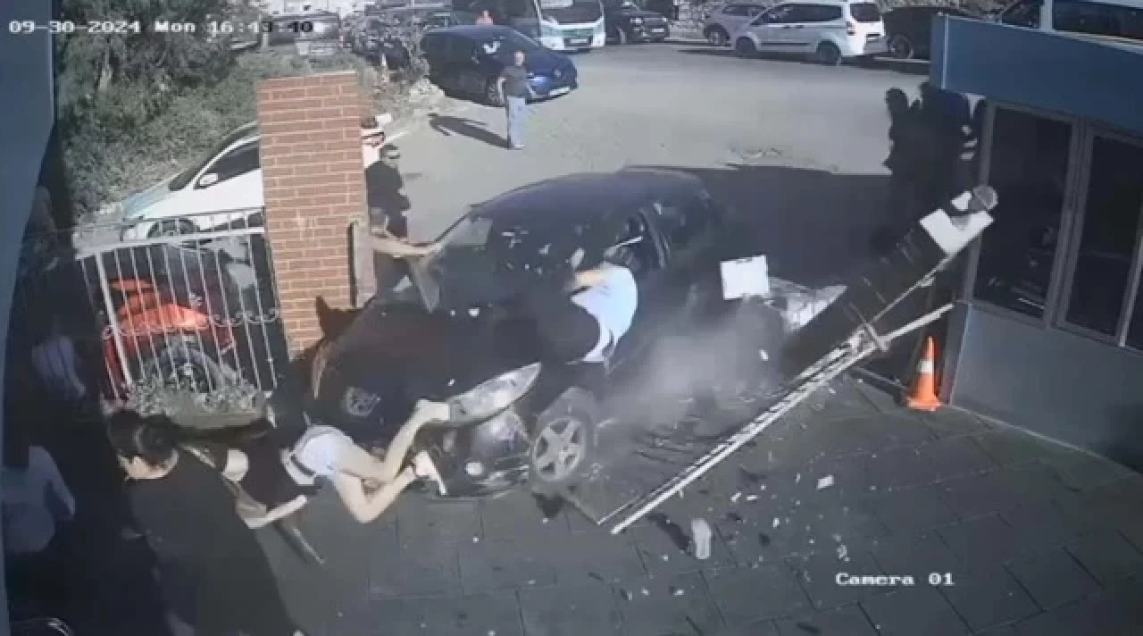 Bu arada kaza bir iş yerinin güvenlik kamerasına yansıdı. Görüntülerde, öğretmenin okulun giriş kapısı önünde bulunan 2 çocuk ve 2 veliyi koşarak gelip uyardığı görüldü. 4 kişi son anda kurtulurken, otomobil okulun bahçesine duvarı kırıp girdiği ve çevredekilerin yaşadığı panik anları da kameraya yansıdı.