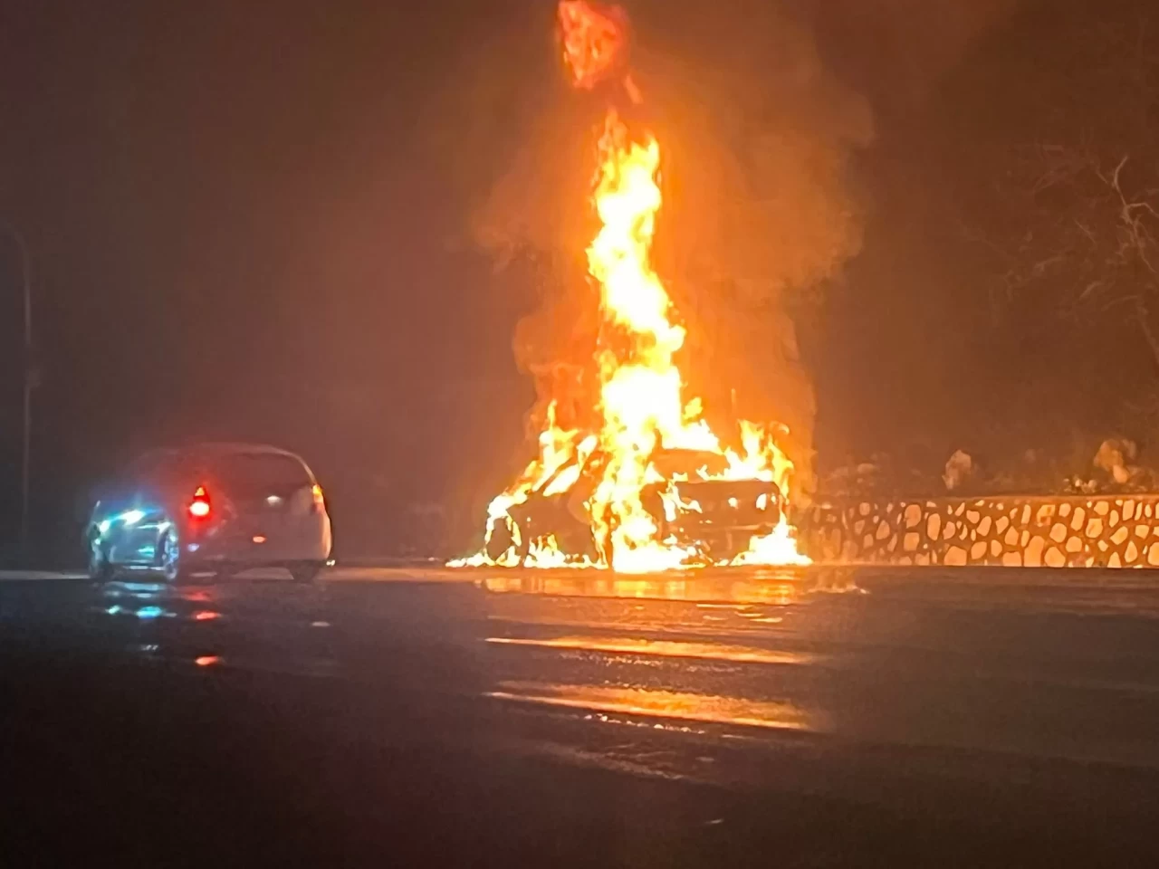 Sürücü aracı yol kenarına park ederek araçta bulunanlarla birlikte dışarı çıkmayı başardı.