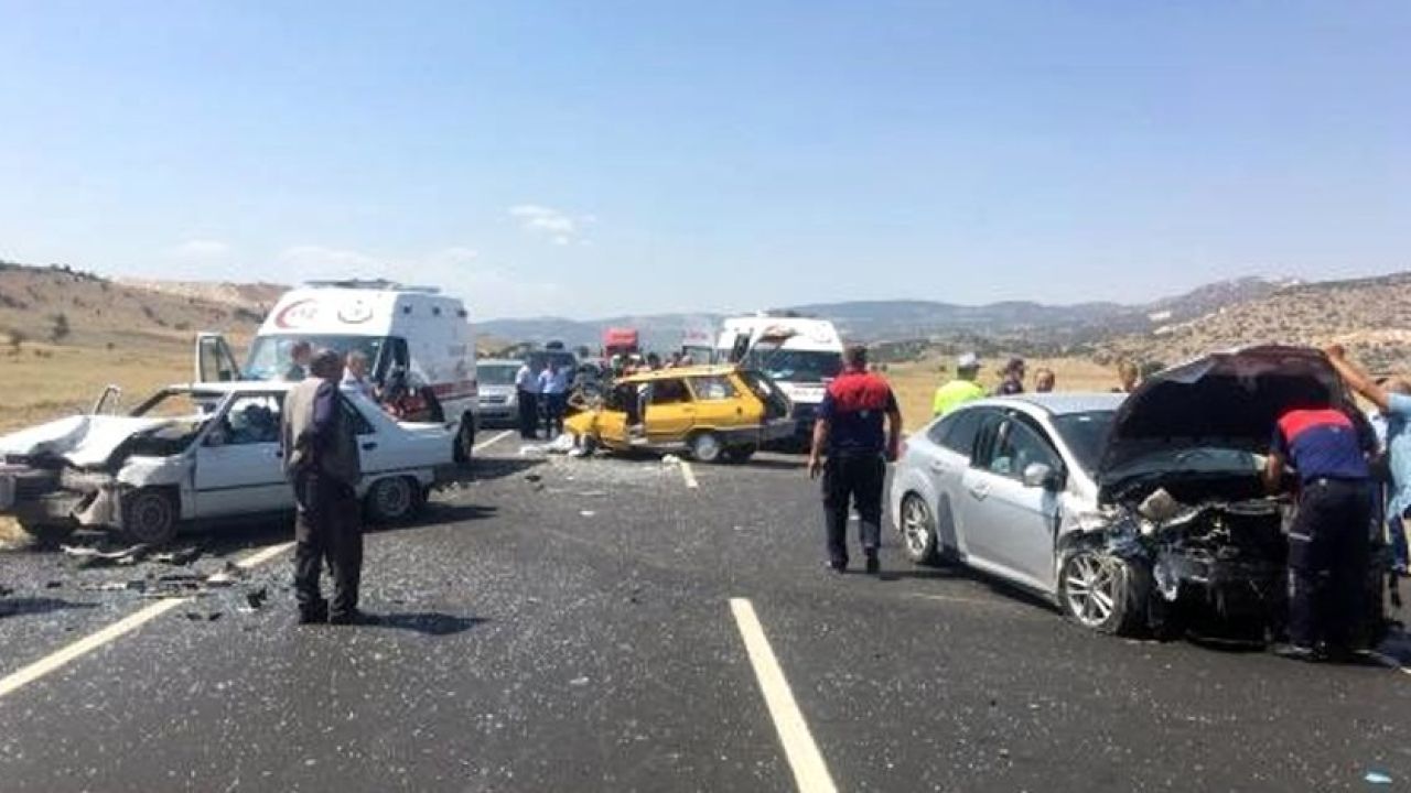 BURDUR'da 3 otomobilin karıştığı kazada 1 kişi öldü, 2'si çocuk 9 kişi yaralandı.