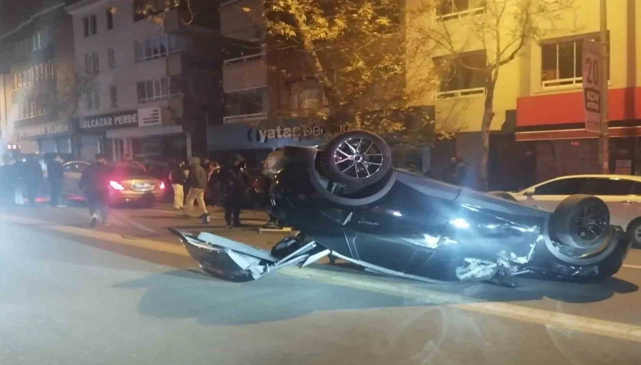 Ankara’nın Çankaya ilçesinde bulunan Dikmen Caddesi’nde meydana gelen kazada, seyir halindeki bir otomobil sürücüsünün direksiyon hakimiyetini kaybetmesi sonucu araç önce bir otomobile, ardından başka bir otomobile çarptı. Çarpmanın etkisiyle otomobil takla attı.