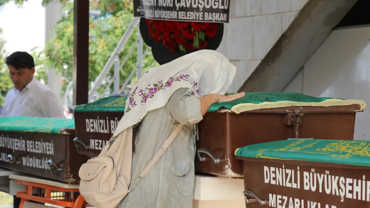 Denizli'de polis memuru eşi tarafından uykuda öldürülen anne ile 2 ve 7 yaşındaki çocukları, son yolculuklarına uğurlandı.