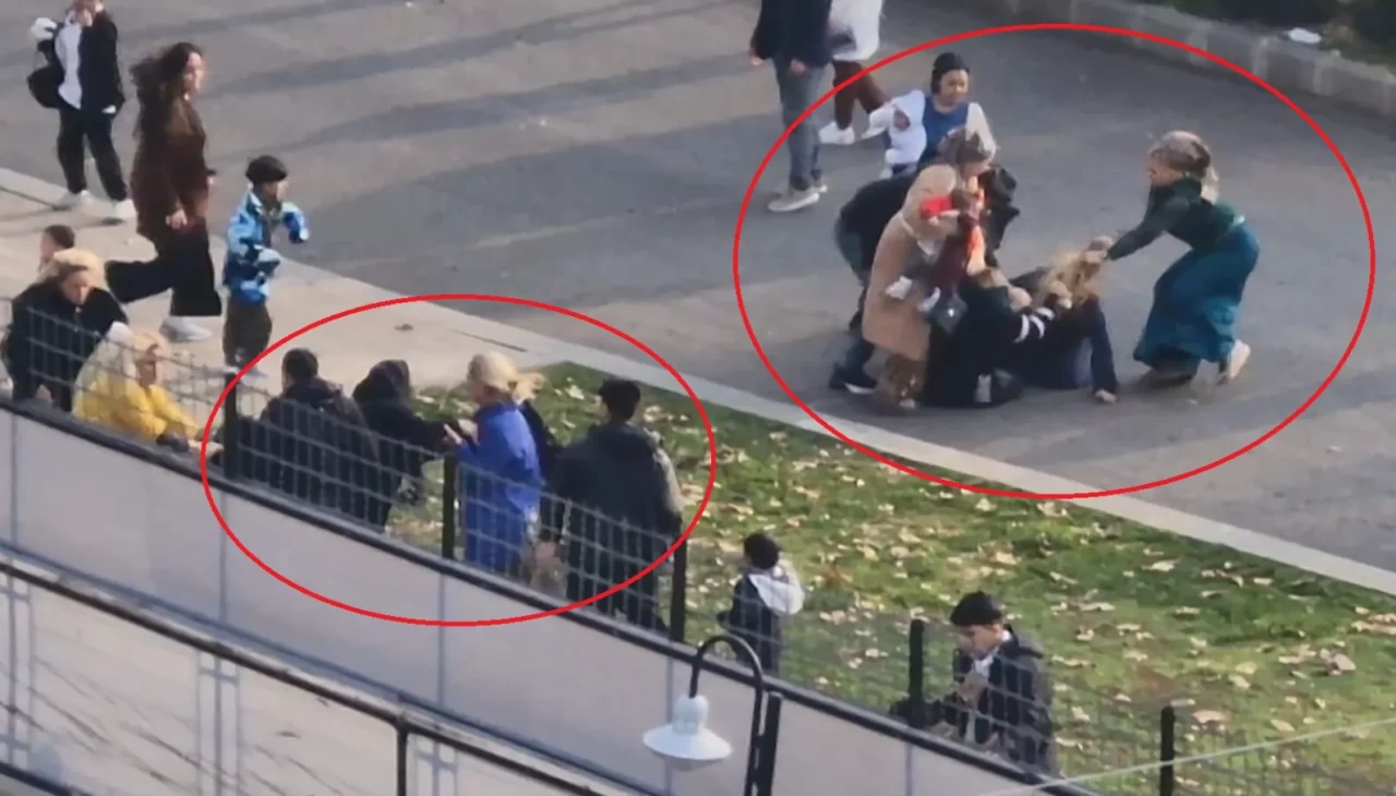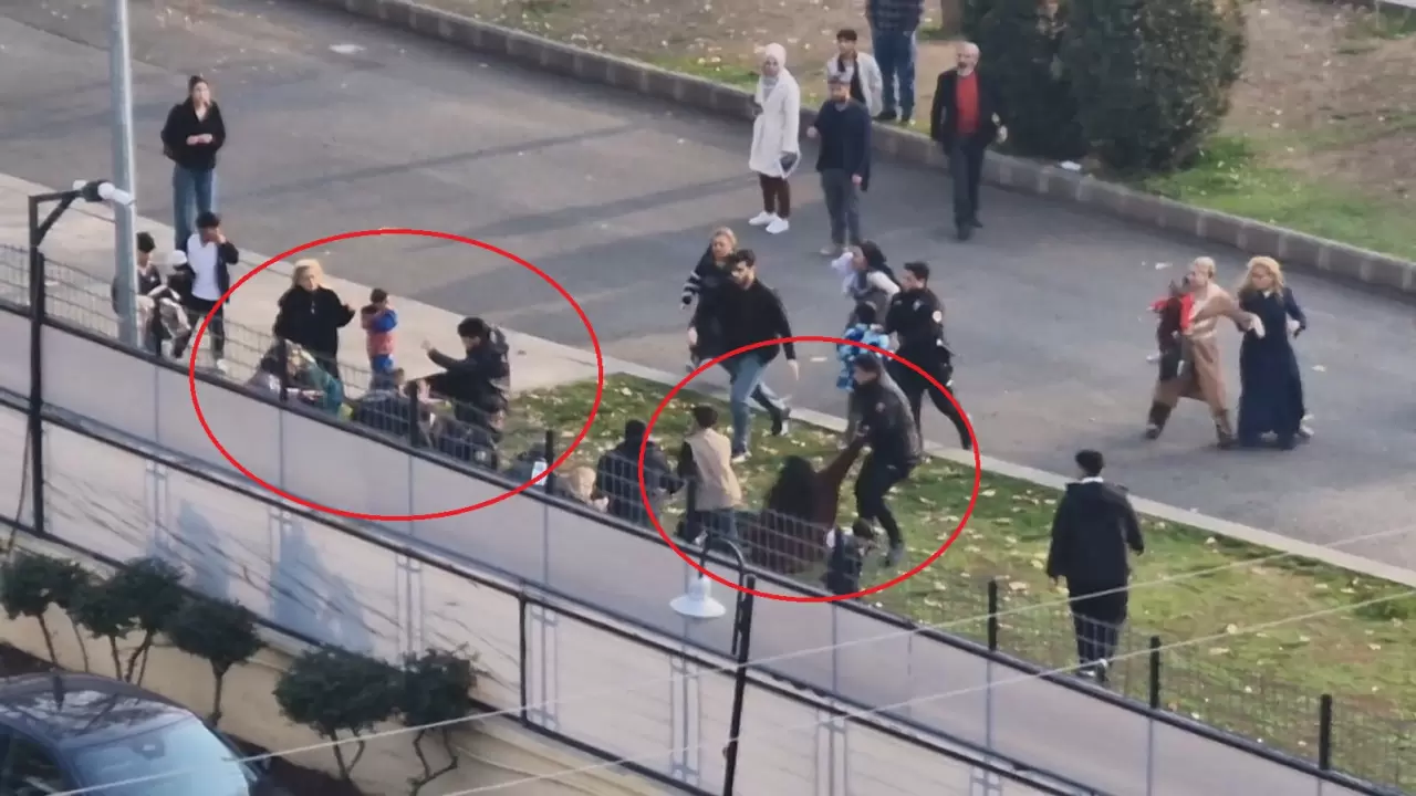 Diyarbakır’da, adliye önünde aralarında kadınlarında olduğu iki grup arasında çıkan tekmeli ve yumruklu kavga, kameraya yansıdı.