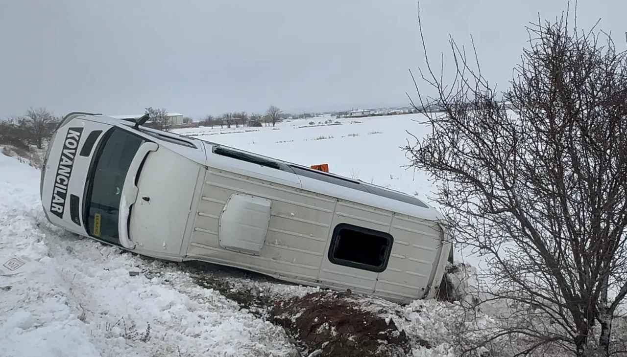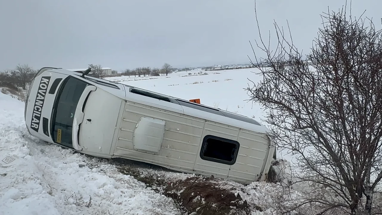 Elazığ’da etkisini sürdüren kar yağışı ulaşımda kazalara neden oldu. Elazığ-Bingöl kara yolunun Mollakendi mevkiinde yolcu taşıyan bir minibüs, kaygan zemin nedeniyle kontrolden çıktı.