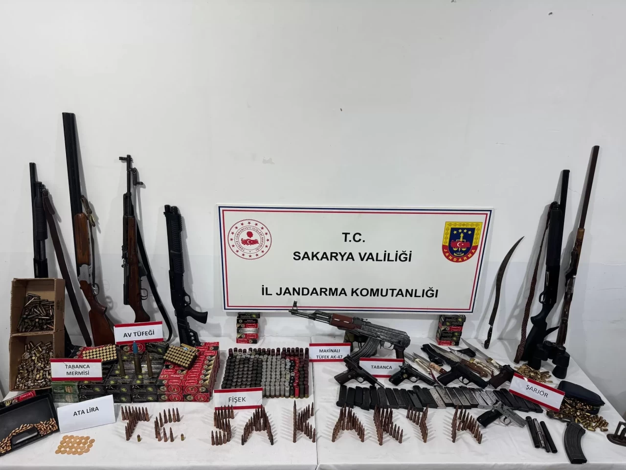 Y.G. (52) isimli şahsın ev ve eklentilerinde yapılan aramalarda; 1 adet kalaşnikof uzun namlulu silah, 1 adet yivli keskin nişancı tüfeği, 2 adet kalaşnikof şarjörü, 5 adet ruhsatsız tabanca, 25 adet tabanca şarjörü, 6 bin 251 adet 9 milimetre tabanca fişeği, 675 adet 45 milimetre tabanca fişeği, 58 adet 7.65 milimetre tabanca fişeği, 332 adet 7.62 milimetre fişek, 5 adet ruhsatsız av tüfeği, 299 adet av tüfeği fişeği, 10 adet kama (kesici-delici alet), 3 adet 5.56 milimetre fişek, 23 adet Ata lira altın, muhtelif sayıda silah yedek parçası ve tamir kiti ele geçirildi. Operasyon çerçevesinde gözaltına alınan Y.G., işlemlerinin ardından çıkarıldığı mahkemece tutuklanarak cezaevine gönderildi.