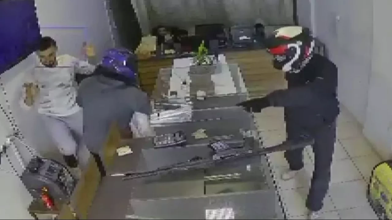 Alshabb'ın çalışanlarıyla birlikte işlerini yaptıkları esnada kafalarında kask bulunan elleri silahlı 2 hırsız iş yerine girdi. Uzun namlulu silah ve tabancalı iki hırsız, işyerindeki 4 şahsı masanın arkasına geçirerek 3 dakika içerisinde kuyumcuyu soydu.