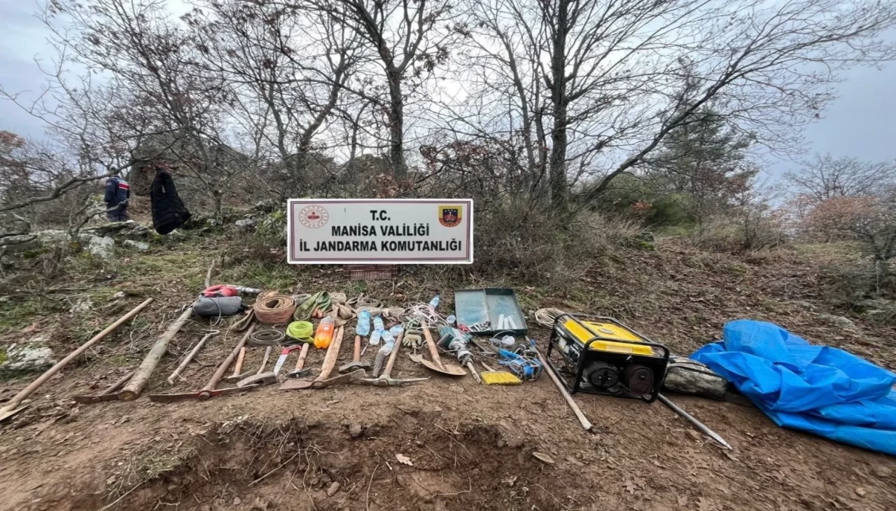 Manisa’nın Gördes ilçesinde jandarma ekipleri tarafından yürütülen saha çalışmaları kapsamında izinsiz kazı yapıldığı bilgisi üzerine harekete geçildi.