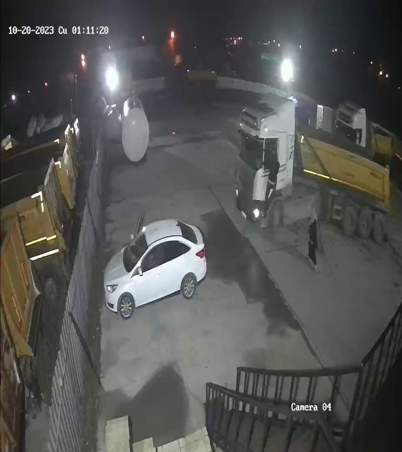 İstanbul’da gece meydana gelen olayda Sancaktepe Paşaköy tır garajından babasına ait hafriyat kamyonunu çalarak dehşet saçan 22 yaşındaki Sezgin Açık’ın yeni görüntüleri ortaya çıktı. Dün gece yaşanan olayın ilk anlarında TIR garajında bulunan bir güvenlik kamerasına yansıyan görüntülerde babasına ait hafriyat kamyonunu çalmaya çalışan Açık’ın kendisine engel olmak isteyen babası İbrahim Halil Açık’ı darp ederek aracı anne ve babasının üzerine sürdüğü görüldü. Yaşanan bu dehşet anlarında uyuşturucunun etkisinde olduğu iddia edilen Sezgin Açık, Sancaktepe’de bulunan tır garajından çalmaya çalıştığı hafriyat kamyonuyla kendisine engel olmaya çalışan anne ve babasını defalarca ezmeye çalıştı. Kamyonla ileri-geri manevralar yapan Açık, babasının kamyonun kapısına tutunmasına aldırış etmeden aracıyla kaçmaya çalıştı. yaşanan o dehşet anları güvenlik kamerasına saniye saniye yansıdı.