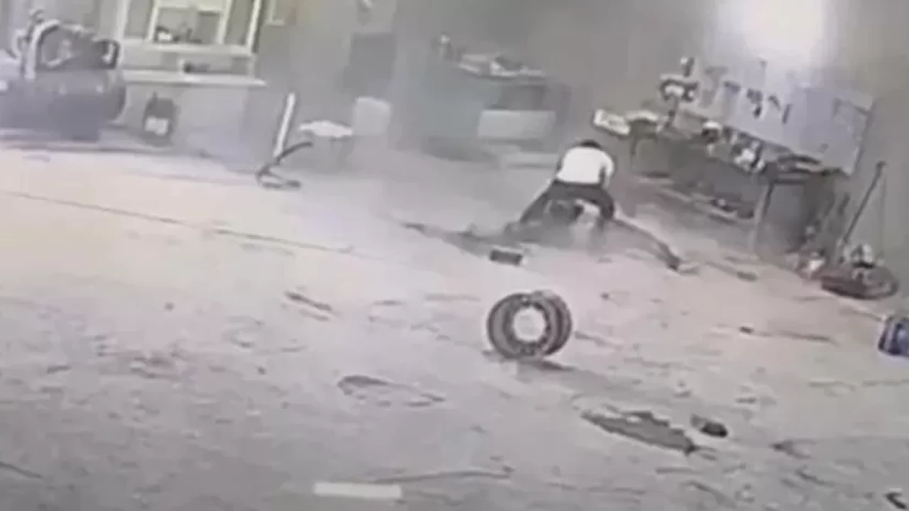 Iğdır'da dün beton ve bims üretimi yapılan iş yerinde Faruk Aycil'in kontrol etmek istediği hava basılan yük aracı lastiği, bir anda patladı.