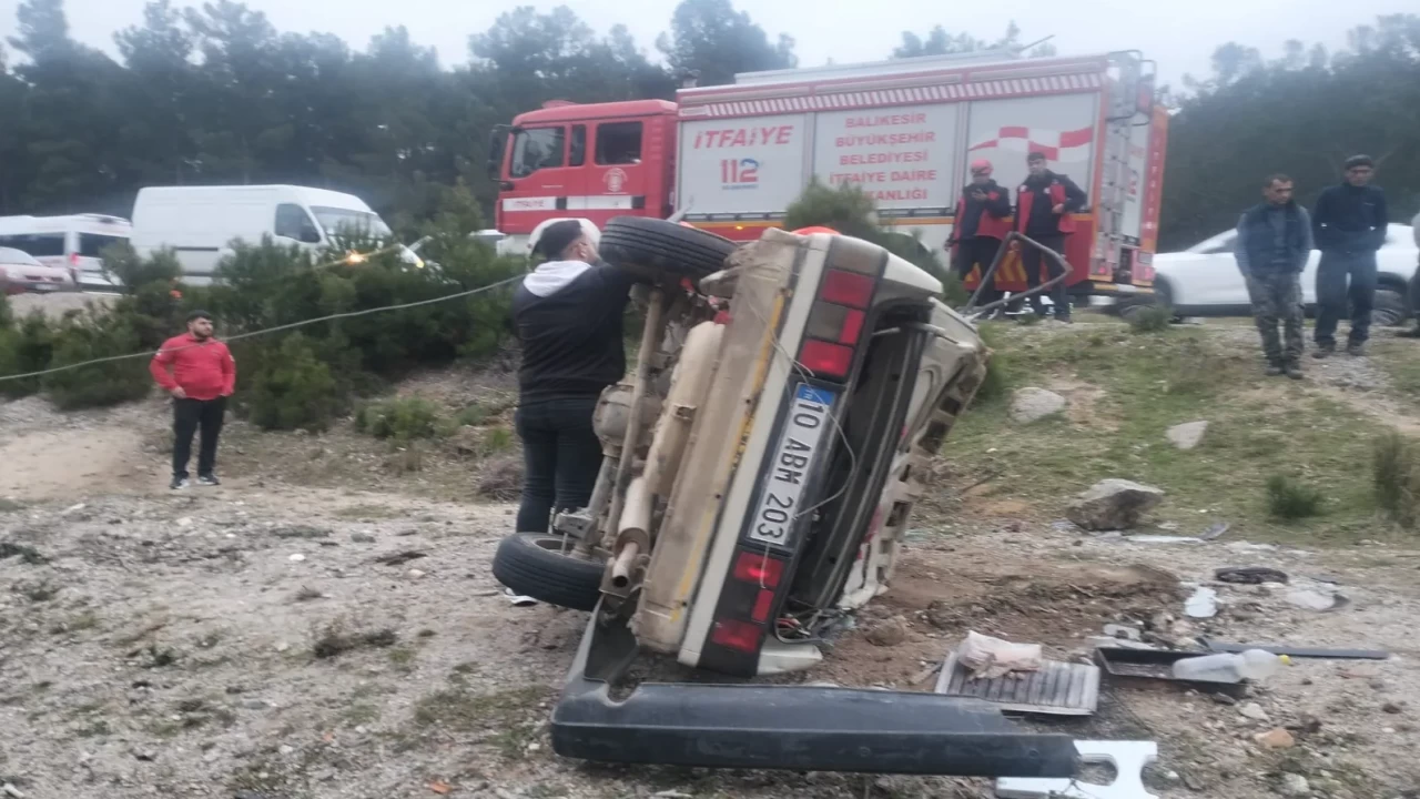Balıkesir ile Çanakkale arasındaki bağlantı yolunda meydana gelen trafik kazası paniğe neden oldu. Edremit–Yenice Karayolu’nun Gülsüm Ana mevkisinde seyir halindeki bir otomobil, sürücüsünün direksiyon hakimiyetini kaybetmesi sonucu yoldan çıkarak şarampole devrildi.