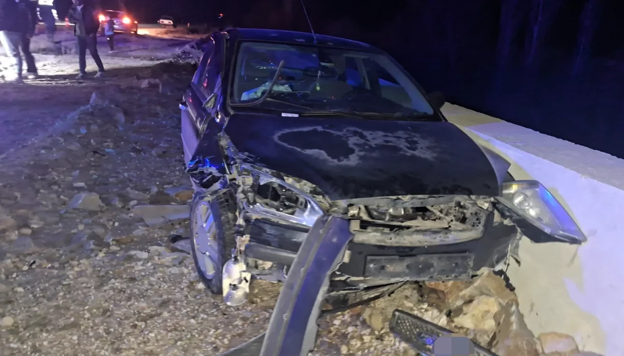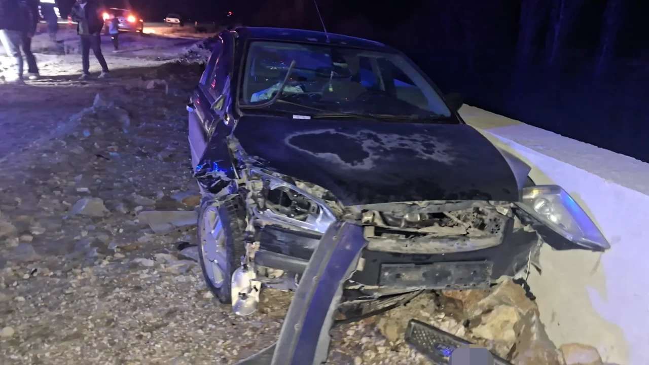 Seyir halindeki otomobil, karşı yönden gelen motosikletle çarpıştı. Çarpmanın etkisiyle otomobil savrularak yol kenarındaki istinat duvarına çarparak durabildi.