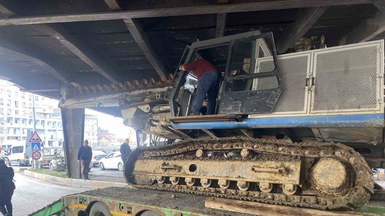 Edinilen bilgiye göre olay çevre yolunda meydana geldi. İddiaya göre kent merkezinden Ankara yolu istikametine giden 74 AAK 871 plakalı iş makinesini taşıyan tır, riskli olduğu gerekçesiyle yıkılma çalışması yapılan köprünün altına takıldı. Çarpmanın etkisiyle iş makinesi tırdan düştü. Yan yatan iş makinesi trafiği kilitleyince uzun araç kuyrukları oluştu. İhbar üzerine olay yerine trafik ekipleri sevk edildi. Kapanan yolda ise iş makinesini kurtarma çalışması başlatıldı.