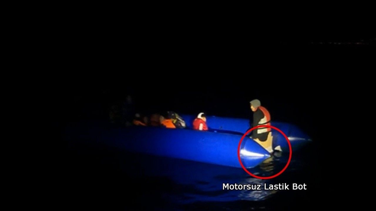 Yunan unsurları tarafından Türk karasularına geri itilerek ölüme terk edilen kaçak göçmenlerin, Sahil Güvenlik ekiplerince paylaşılan görüntülerde, kaçak göçmenlerin lastik bottaki motorunun söküldüğü ve deniz ortasında yağmur altında mahsur kaldığı görülüyor.