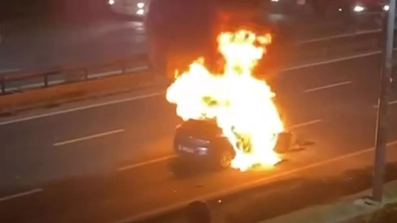 Yangın kameraya yansıdı. Aracın alev alev yandığı anlar, çevredekiler tarafından cep telefonu kamerası ile kaydedildi. Polis olayla ilgili soruşturma başlattı.