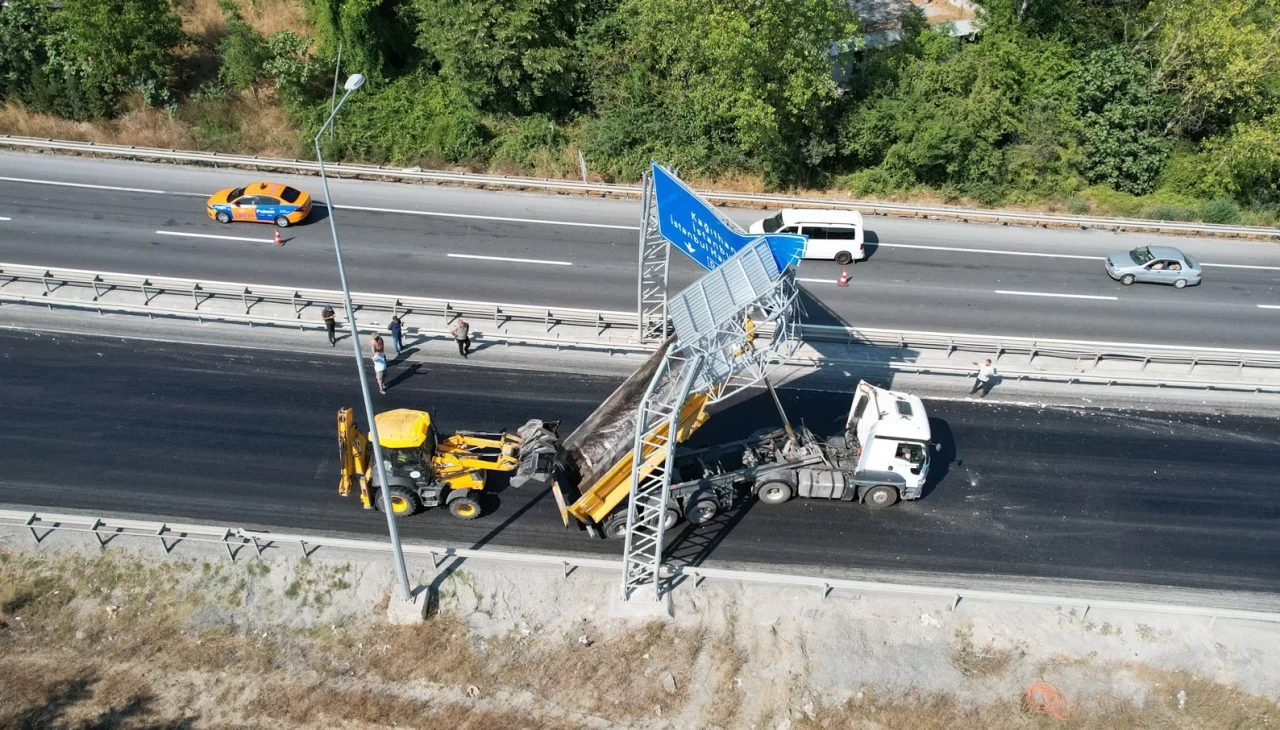 Edinilen bilgiye göre, Arnavutköy Tayakadın mevkiinde saat 17.00 sıralarında Karayolları Genel Müdürlüğü’nün asfaltlama çalışması yürüttüğü Hastal-Kemerburgaz yolunda ilginç bir kaza yaşandı. İddiaya göre, kapalı yolda asfalt dökümünün ardından hafriyat kamyonunun damperi açık unutuldu. Araç yoluna devam edince açık unutulan damper yönlendirme levhasına çarptı. Tabelalar ve kamyonda hasar oluştu. Oluşan hasar dron kamerasıyla görüntülendi.