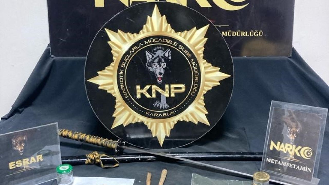 Polis ekipleri, Bölge Trafik Uygulama noktasında U.O.’nun durumundan şüphelenerek, şahsın araç ve üzerinde arama yapıldı. Aramada, 4.05 gram esrar, 3.55 gram metamfetamin, 2 adet içime hazır sigara vaziyetinde esrar, birer adet kılıç ve satır ele geçirildi.