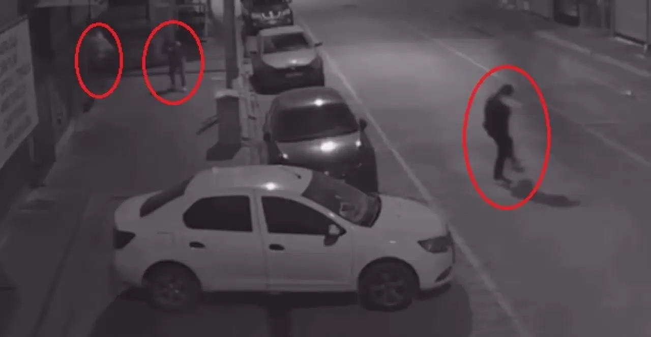 Kavga anı, çevredeki bir güvenlik kamerasına yansıdı. Görüntülerde şüphelilerin otomobilden ve sokak arasından tüfekle ateş açtıkları, Osman Efe Tuluk’un saçmaların isabet etmesiyle yere yığıldığı, saldırganların ise otomobille olay yerinden kaçtıkları görüldü.