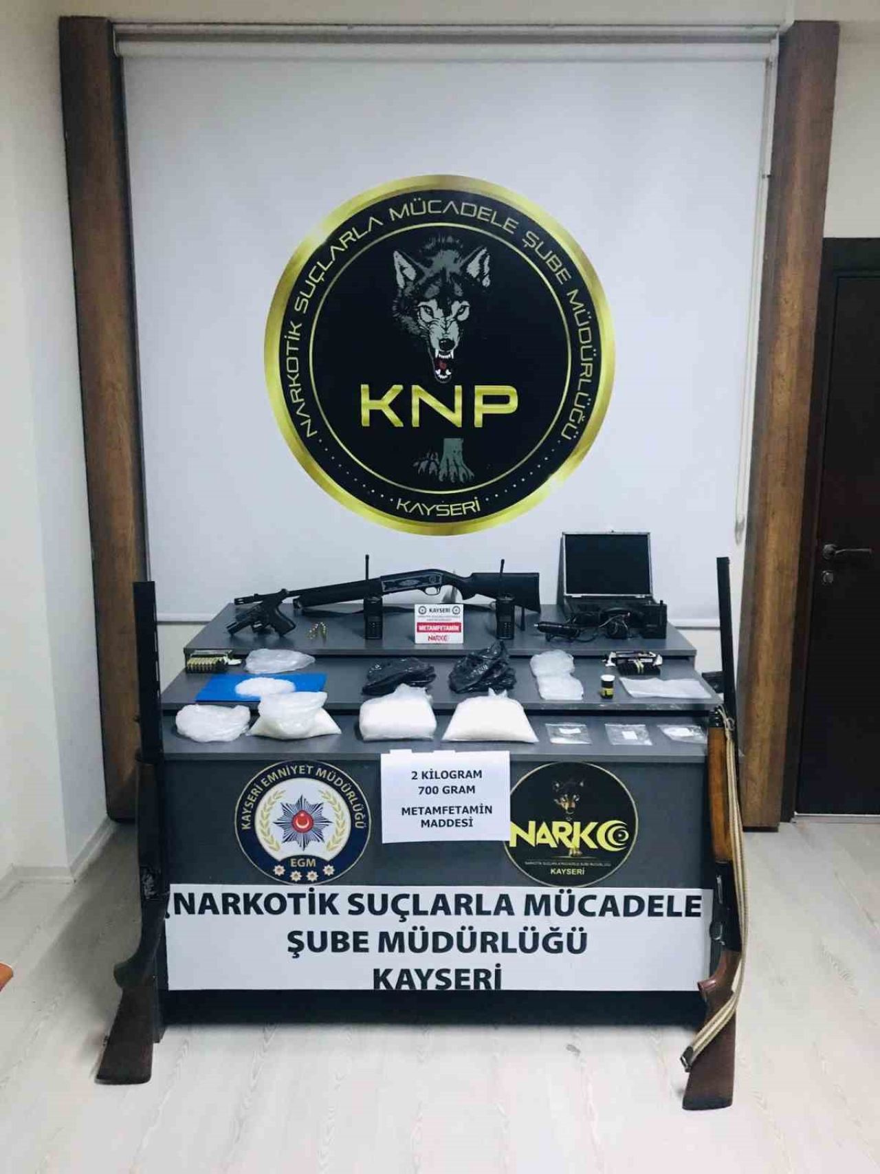 İl Emniyet Müdürlüğü Narkotik Suçlarla Mücadele Şube Müdürlüğü ekipleri, M.A., L.A. ve R.A.’nın kentte uyuşturucu madde ticareti yaptığını tespit etti. Operasyon düzenleyen ekipler şüphelileri gözaltına alırken, şahısların üzerinde, araçlarında ve ikametlerinde arama yaptı. Yapılan aramalarda, 2.7 kilo uyuşturucu madde, 3 ruhsatsız av tüfeği, 1 ruhsatsız tabanca ve 61 fişek ile 2 el telsizi ele geçirildi.